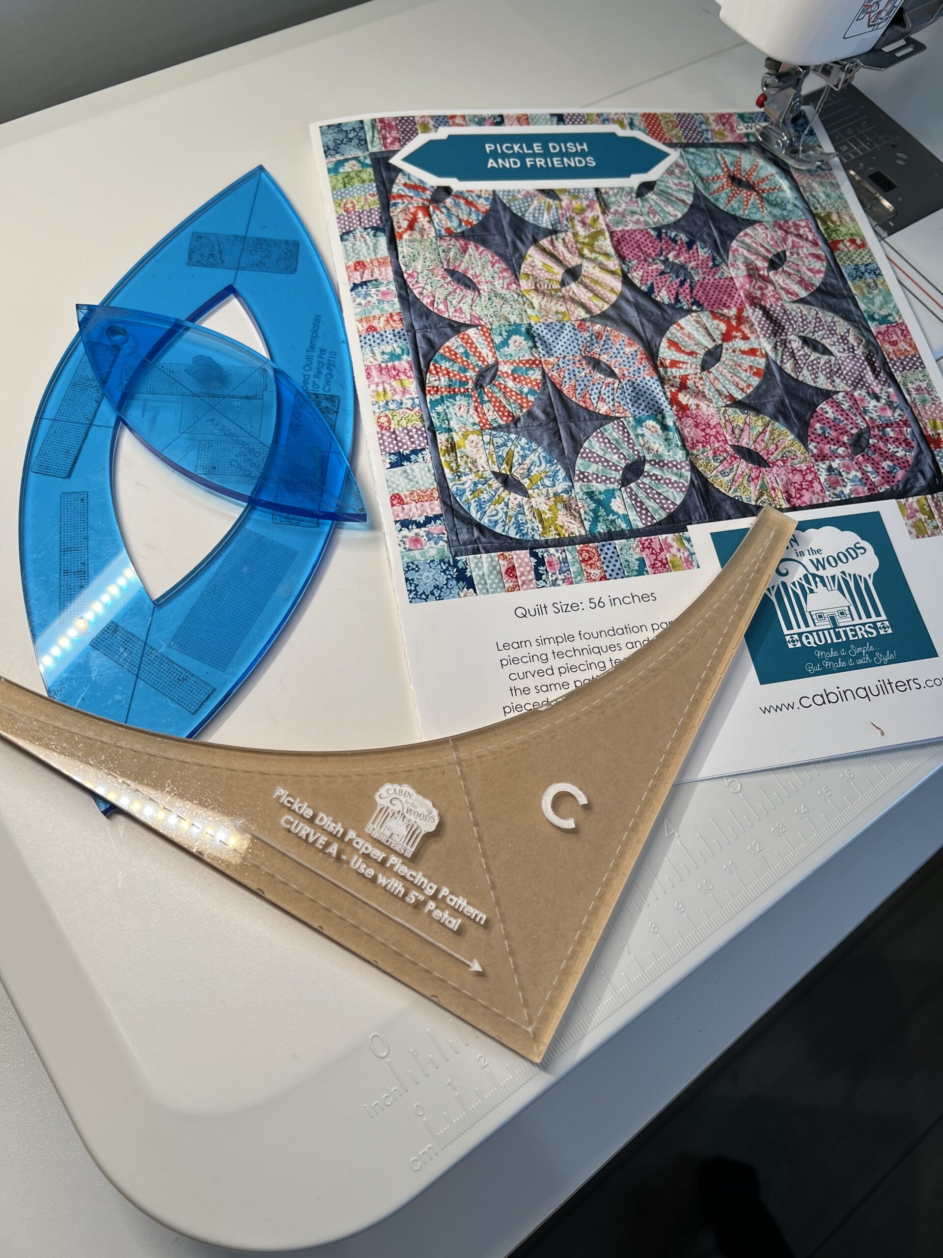SOLD SEPARATELY: Acrylic templates for both the curve pieces can be purchased separately. Nested Petal Template is used for the interior of the block. The Curve A template for the Nested Petal Template is also available. Click related product links. Acrylic templates ARE NOT included with the pattern.